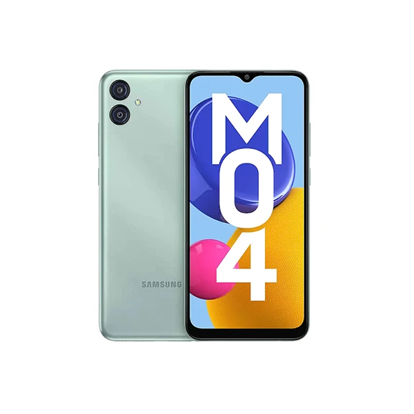 The Galaxy M04 has a 6.5 inches display, powered by Helio P35 (12nm) chipset, 4 GB of RAM, 64GB/128GB of internal storage, and a 5,000 mAh Battery. Coming to cameras, it has a dual-camera system that consists of a 13 MP + 2 MP and a 5 MP front camera for selfies. The Galaxy M04 is available in Sea Glass Green, and Shadow Blue colors.